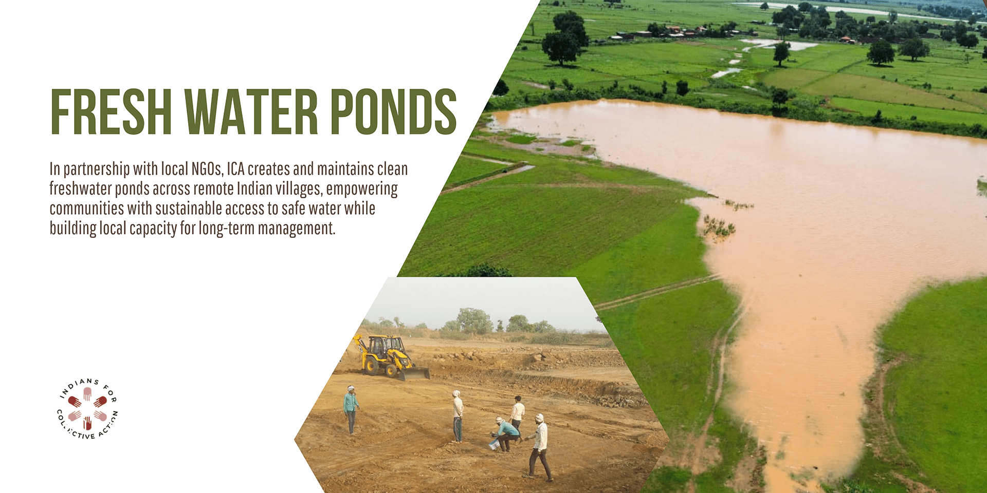 The ICA Impact Initiative, in a remarkable collaborative effort with Mukti Foundation and Agarwal Foundation, has successfully rejuvenated 250 ponds in the Sundarban region of West Bengal. This monumental project aimed at revitalizing local ecosystems and enhancing water availability for both agriculture and daily use by the community, has substantially benefited the biodiversity and livelihoods of the region. Additionally, ICA extends its water conservation efforts to Chitrakoot, Uttar Pradesh, working alongside ABSSS Foundation. Here, the focus has been on implementing the Doha and Tank models of Fresh Water Pond, which are designed to optimize water retention and usage in arid areas. These initiatives are part of ICA's broader commitment to sustainable development and water resource management, ensuring that communities have the resources they need to thrive while maintaining ecological balance.